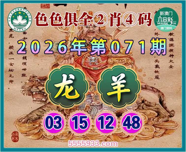 071期:〖色色俱全〗 ②肖④码【龙】【03.15.12.48】开:羊48